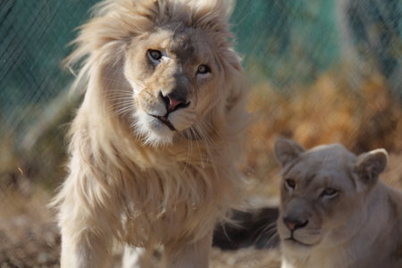 3月22日からホワイトラインは一頭ずつ日替わりで展示いたします。 日曜日:メル(♀) 月曜日:ヴェルガ(♂) 火曜日:チャイ(♀) 水曜日:ヴェルガ(♂) 木曜日:メル(♀) 金曜日:チャイ(♀) 土曜日:ヴェルガ(♂) ※動物の体調や天候等で予告なく急きょ変更になることがあります。 ホワイトライオンは、サファリゾーン(乗物から見るエリア)と ふれあい広場奥のウォークエリアからご覧いただけます。