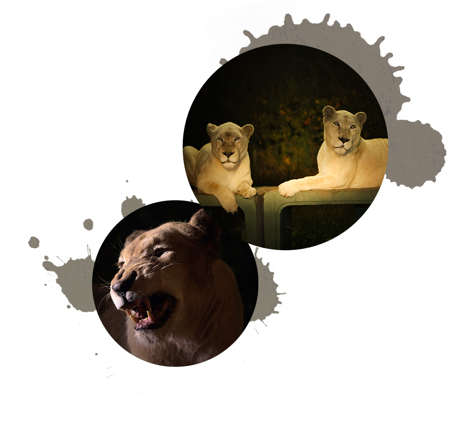 活動的になる夜行性動物たち、暗闇から迫るライオンやトラの迫力やキリンやゾウなど